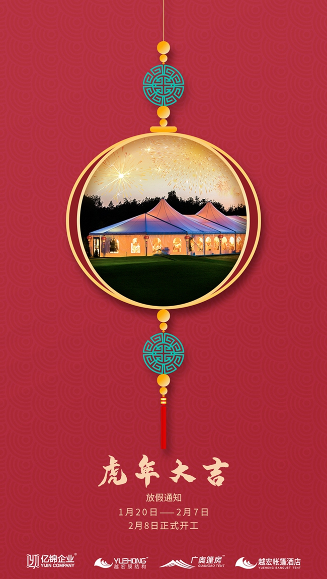 感謝所有的客戶與億錦家人們在這一年的陪伴與支持。在2022年新春來臨之際,億錦企業(旗下越宏膜結構)提前祝大家新春快樂,虎年大吉,虎虎生威!