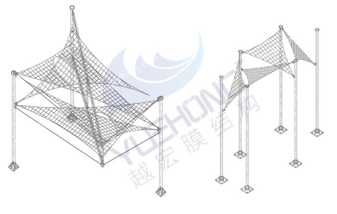 越宏膜結(jié)構(gòu)廠家的景觀膜結(jié)構(gòu)是由鋼結(jié)構(gòu)和膜材組成,分別有張拉式膜結(jié)構(gòu)、索膜結(jié)構(gòu)、骨架式膜結(jié)構(gòu)、空間結(jié)構(gòu)式等樣式選擇,根據(jù)不同場景進(jìn)行設(shè)計(jì)出個(gè)性化膜結(jié)構(gòu)。